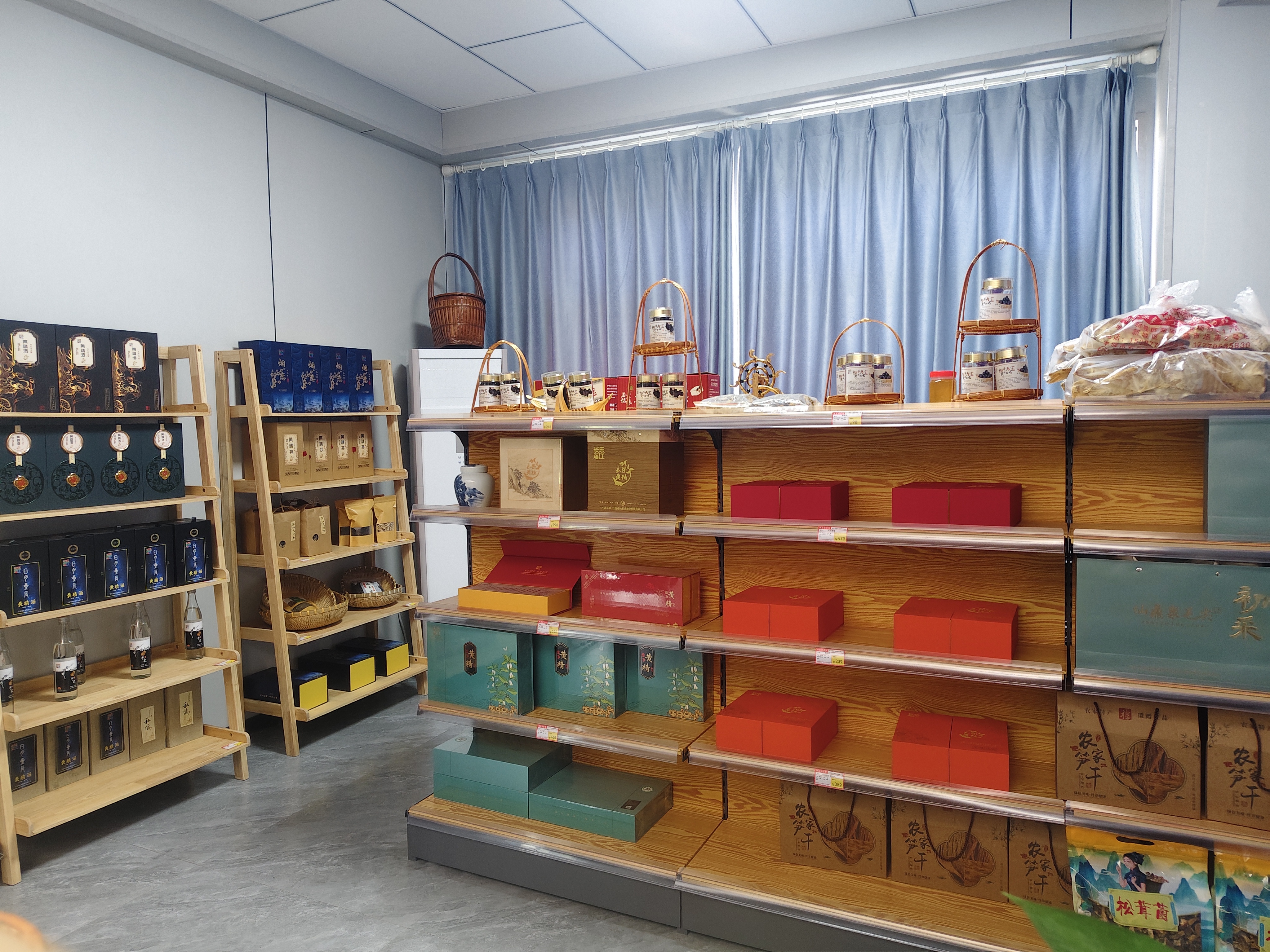 多元物产的集聚效应:此外,展厅内陈列的本地生姜片、优质笋干以及各类豆制品,展示了石江乡丰富的资源优势。特别是依托10万亩林地资源开发的笋干产业,通过现代化的加工厂,将自然资源高效转化为农民增收的“聚宝盆”。